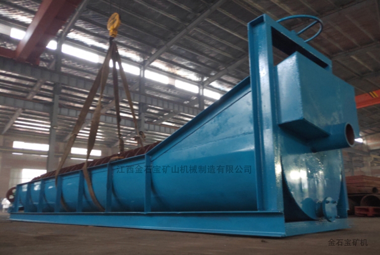 槽子的宽度对溢流产品的排出速度有很大关系,槽子宽则溢流排出速度快,因而粗粒随溢流排出的可能性也就愈大。但是另一方面,槽子愈宽则矿石的沉降面积也就愈大,易于沉降。所以槽子的宽度对分级效果的影响是不大的,只是与分级机的处理能力有密切关系。槽子的宽度大,处理能力也就大。反之,处理能力小。所以分级机的槽体宽度应与磨矿机处理能力大小相适应。