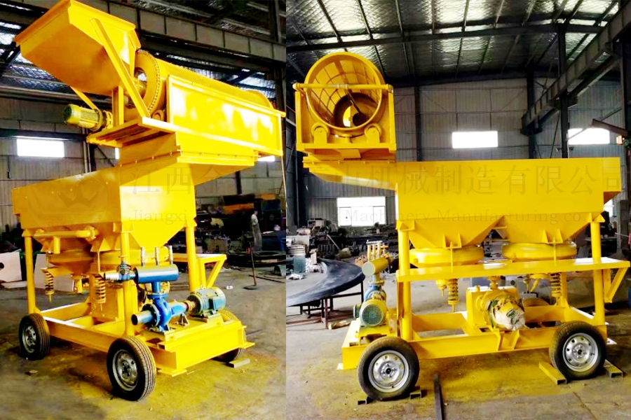 滚筒跳汰一体机又名移动式黄金选取设备,是一种主要用于砂金矿分选的机械设备,可移动的采金设备,可由人工上料或装载机上料到达料仓,由滚筒筛或者绞桶进行物料的筛分。整套淘金设备适合于古河道,山岭,戈壁滩含泥量高的矿体。本设备每天处理量300-500吨相当于一个小型选厂,重矿物富集比高,回收率可达98%以上。